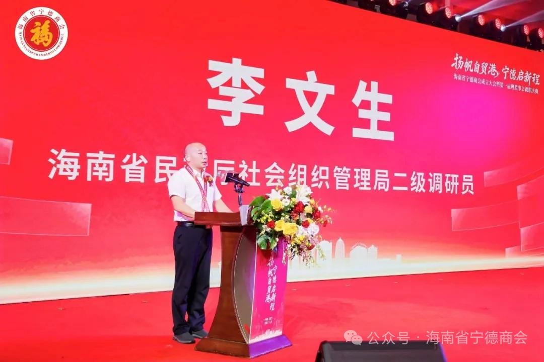11月8日,海南省宁德商会成立大会暨第一届理监事会就职庆典在海口隆重举行,海南省工商联党组成员刘峰松、海南省委统战部非公有制经济处二级调研员李攀峰、海南省民政厅社管局二级调研员李文生,宁德市委统战部副部长、市工商联党组书记钟灵灵,宁德市霞浦县、屏南县、周宁县有关负责同志等琼宁两地领导嘉宾,以及异地宁德商会代表和海南省宁德商会全体会员代表近400人齐聚一堂,共同见证这一具有里程碑意义的重要时刻。此次大会的圆满举行,标志着在海南的宁德籍企业有了一个全新的交流合作平台,也开启了宁德与海南两地经济文化交流合作的新篇章。
