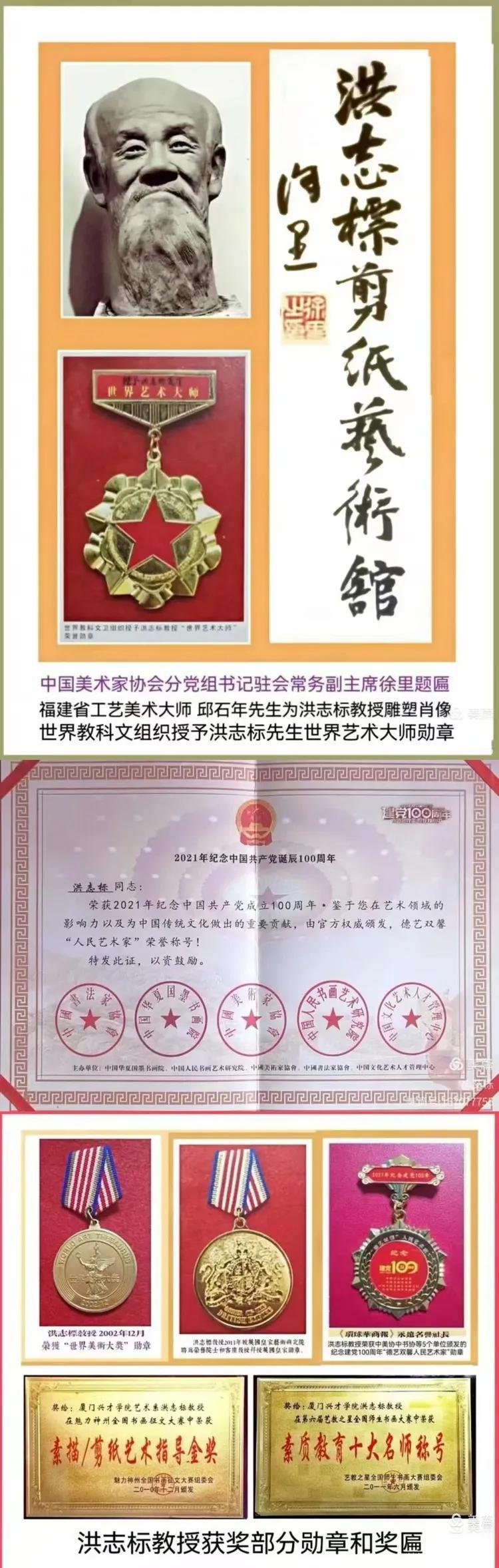 他的艺术才华不仅在国内受到赞誉,还在国际艺术界获得了广泛认可。洪志标教授荣获了“世界美术大奖”、“当代艺术教育十大名师”称号,以及“大学生素描/剪纸艺术作品指导金奖”等多项殊荣。此外,他还被授予英国皇家勋章和世界艺术大师勋章,这些荣誉都充分证明了他在艺术领域的卓越贡献和影响力。