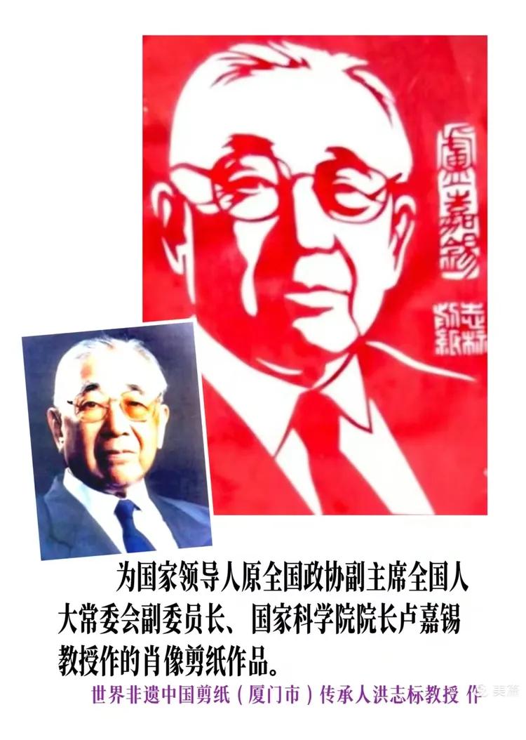 卢嘉锡肖像剪者纸作者• 88米寿之年老艺术家洪志标教授简介