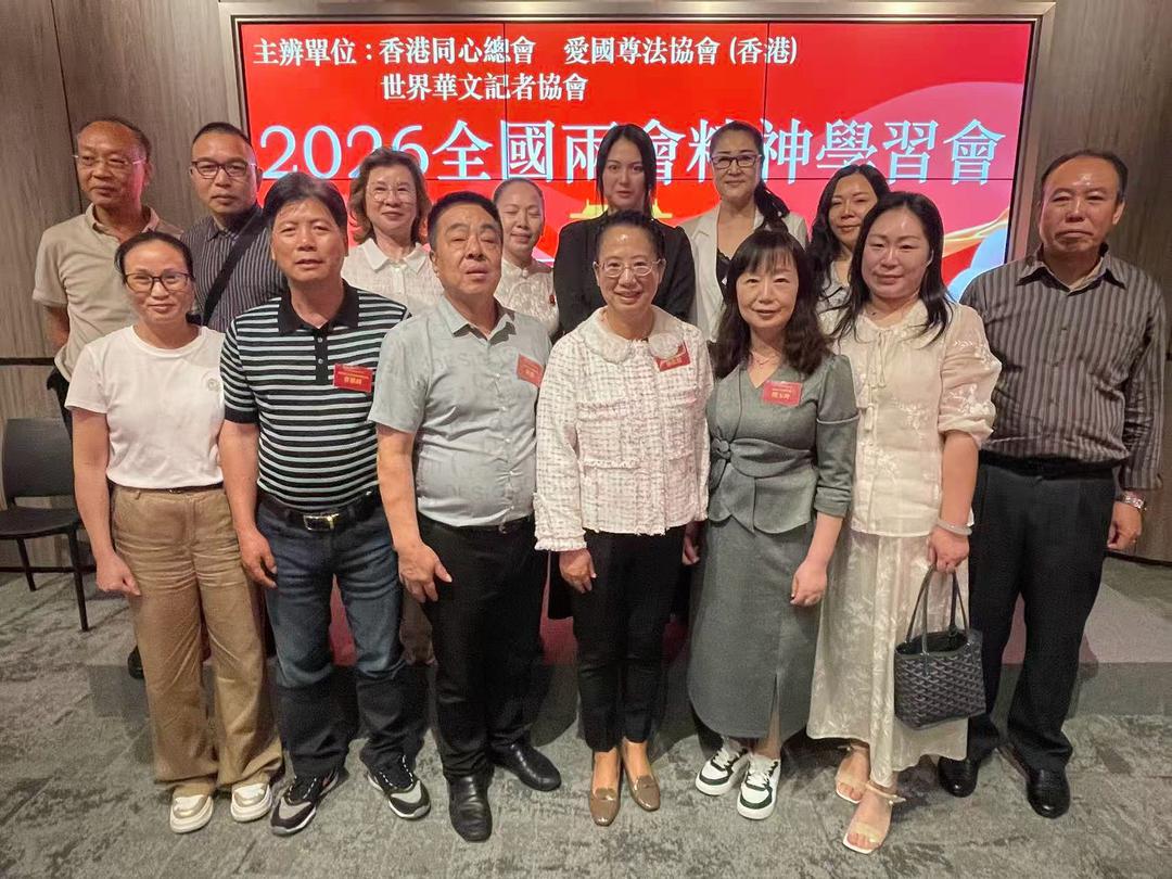 港区全国政协委员何汉权先生(BBS, MH)、张佐姣女士;香港同心总会名誉会长袁可丰先生、会长閔玉玲女士、秘书长郭健勇先生;香港爱国尊法协会会长张细藩先生、执行会长李珊女士、副会长赵莉女士、副会长谢裕邦先生、福田政协黄贵友先生;世界华文记者协会主席陈彪先生、创会主席陈捷先生、执行副主席王彬女士、常务副主席曹祺锋先生、副主席熊小妹女士、理事会成员何雪平、林文静、毛枫玉、黄国荣、游盛渼、余雪辉、蓝婉禎等出席会议等社会各界代表齐聚一堂,深入学习2026年全国两会核心要义,聚焦国家“十五五”规划战略部署,探討香港在粤港澳大湾区建设、高水准对外开放中的角色定位,凝聚“爱国爱港、同心奋进、服务国家”的广泛共识。